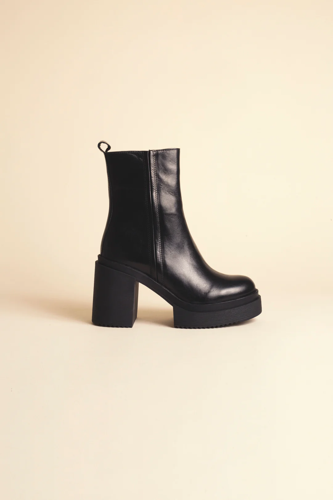La bottine Pump, la bottine tracks en cuir parfaite. À adopter avec tous nos looks : jean, pantalon, jupe et robe.