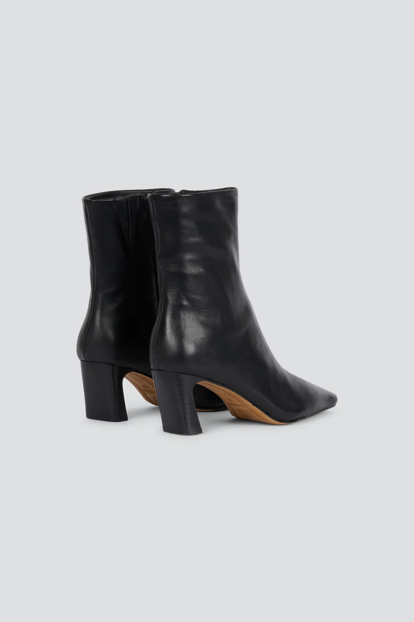 Bottines en cuir à bout pointu, talon mi-haut en bois. Élégantes et confortables, elles complètent vos looks du quotidien comme vos tenues habillées.