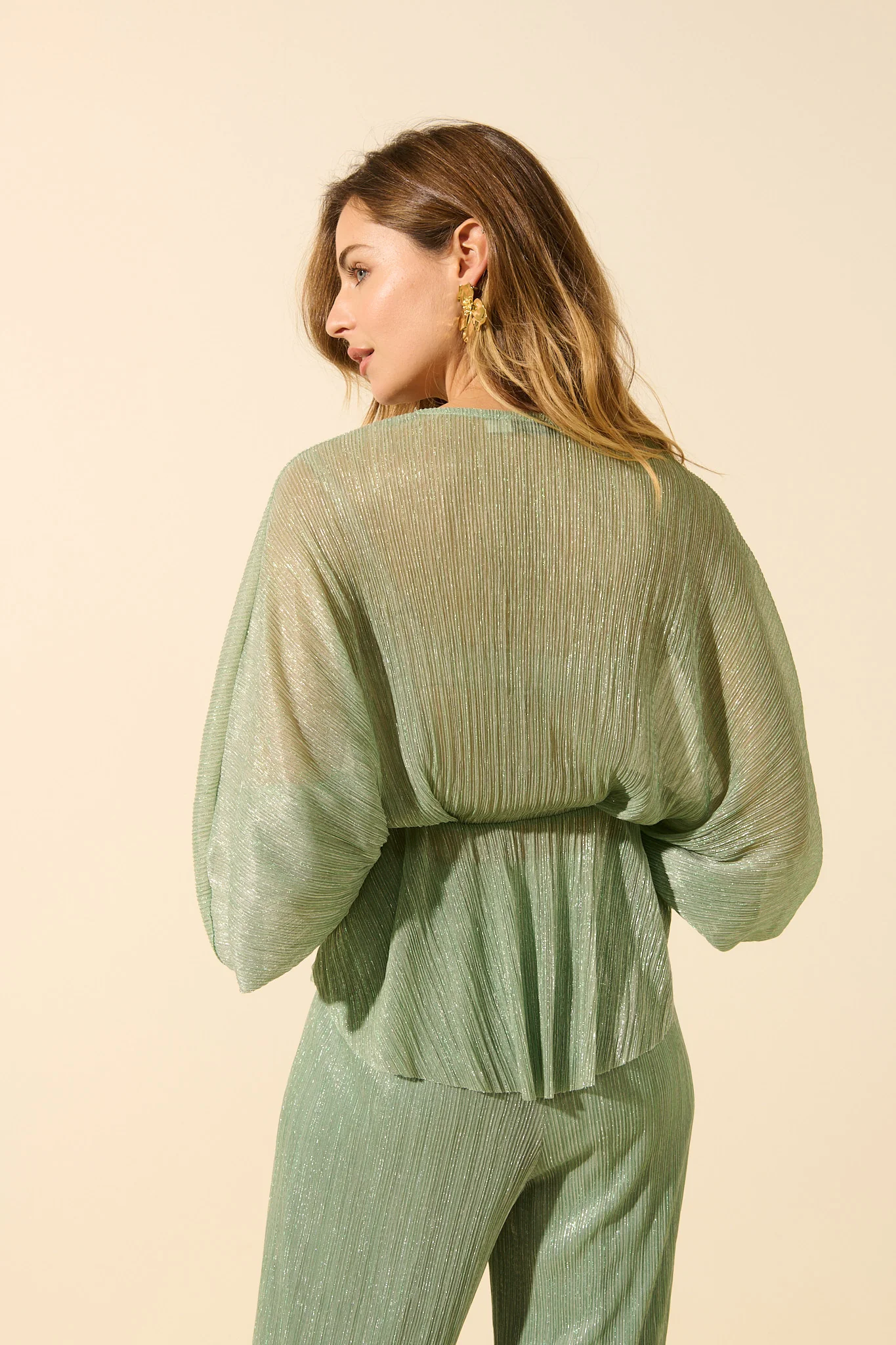 Le top aux manches longues Lisa, se pare de détails scintillants pour illuminer toutes vos occasions. Sa taille smockée dessine un décolleté plongeant et une basque volumineuse, créant un effet volanté.