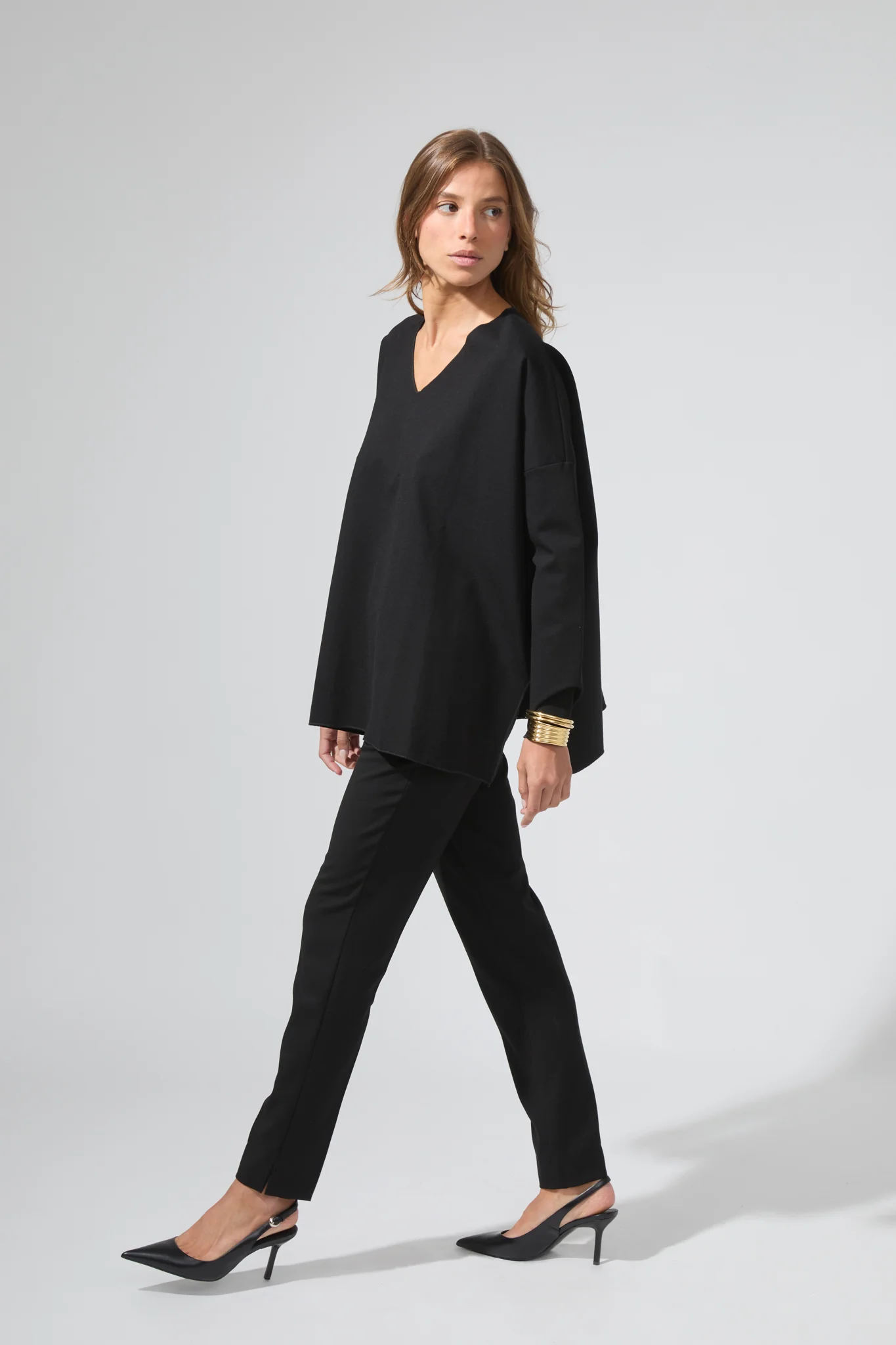 Le pull Marthe est un modèle sobre et facile à matcher. Manches longues, coupe assez ample avec un col rond à l'avant.